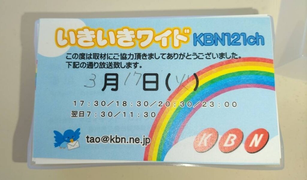 2026年3月6日 / 最終更新日時 : 2026年3月6日 piotto お知らせ KBNいきいきワイドでPiottoチャイが紹介されます。 [放送日] 3月17日(火)17:30/18:30/20:30/23:003月18日(水)7:30/11:30 是非ご覧ください。